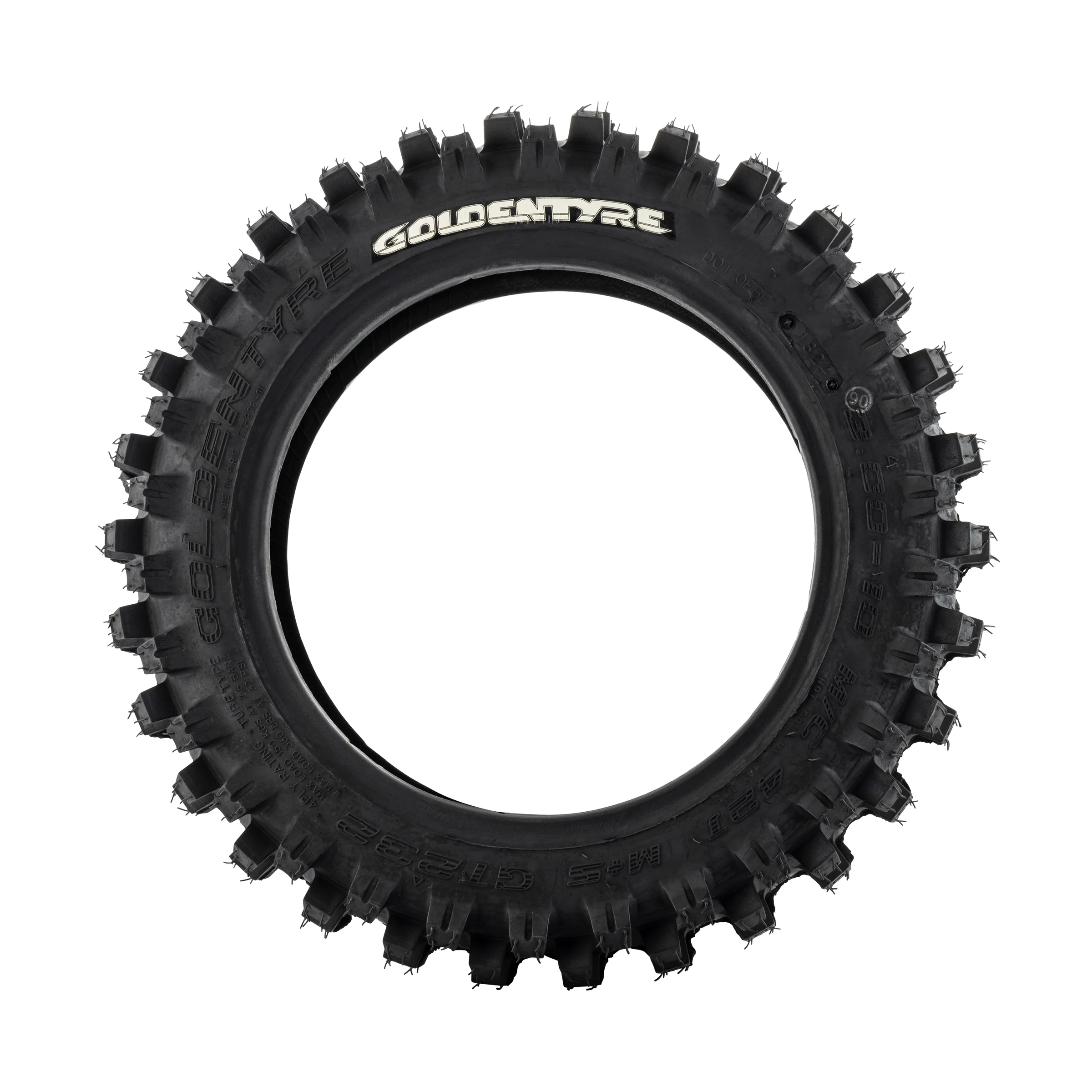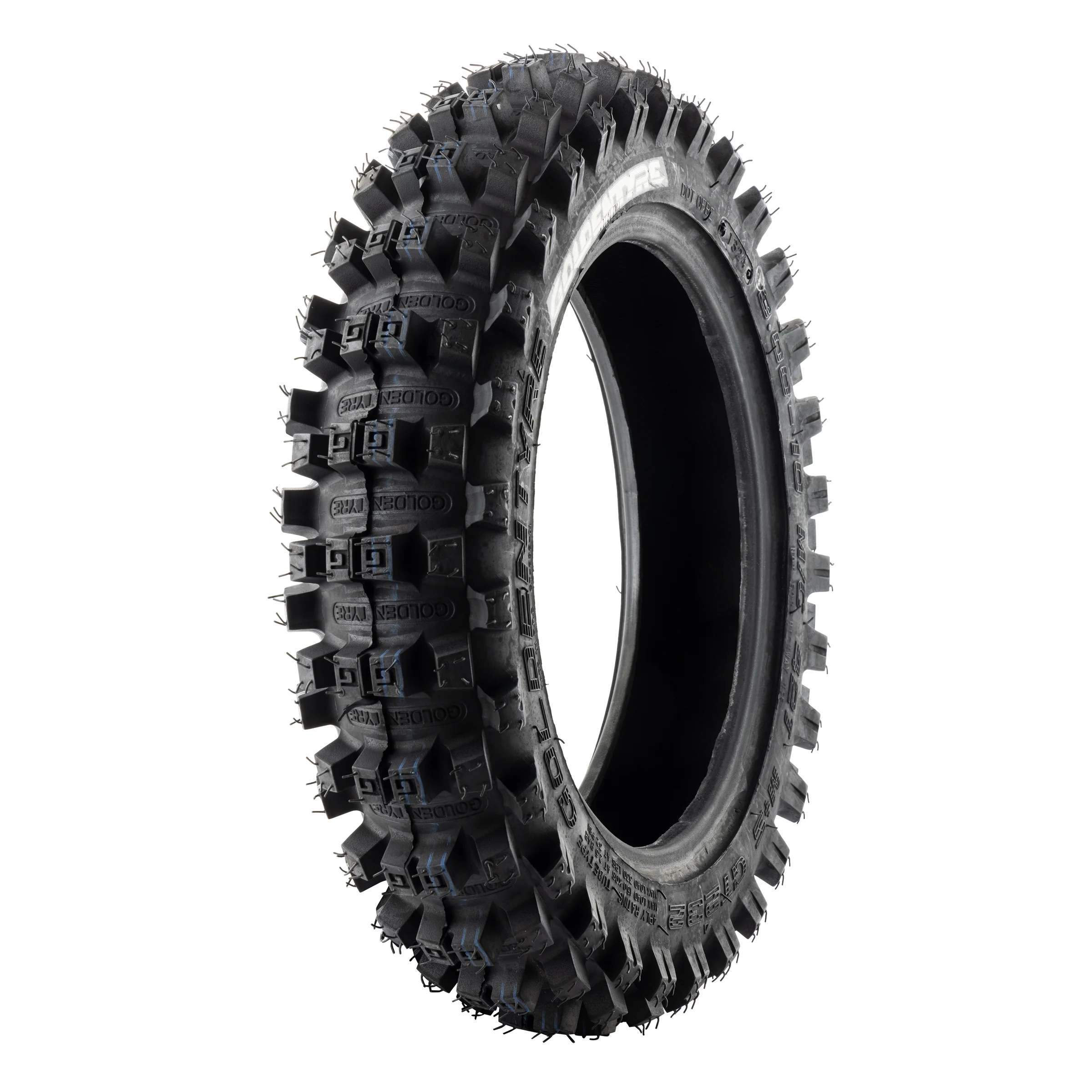 Le Vespacross est de plus en plus populaire, notamment en Italie où la culture de la conduite tout-terrain est pratiquée avec une exigence professionnelle. C’est pourquoi nous nous sommes mis à la recherche de profils tout-terrain de qualité. Nous pouvons maintenant vous proposer le Pneu cross GOLDENTYRE GT232N dans la taille 3.00-10″. Avec son mélange de gomme moyennement dur, il mord le sol aussi bien sur des terrains poussiéreux que boueux.