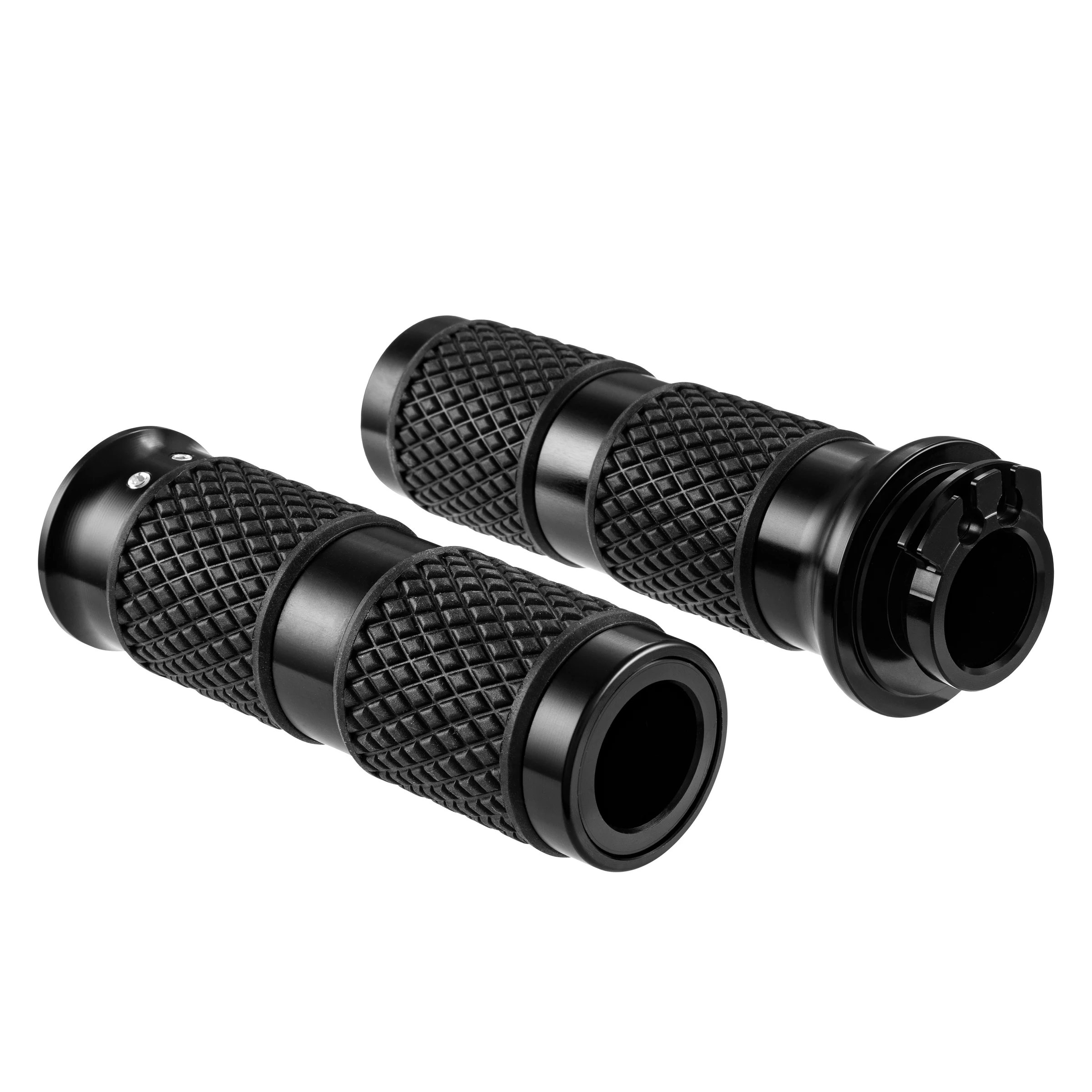 Les poignées sont entièrement usinées CNC et finies avec une surface anodisée noire BlackPearl – une finition élégante avec une qualité durable. Les extrémités des poignées peuvent être remplacées individuellement et, selon la version, elles offrent également des variantes ouvertes pour le montage de miroirs ou de poids sur le guidon.